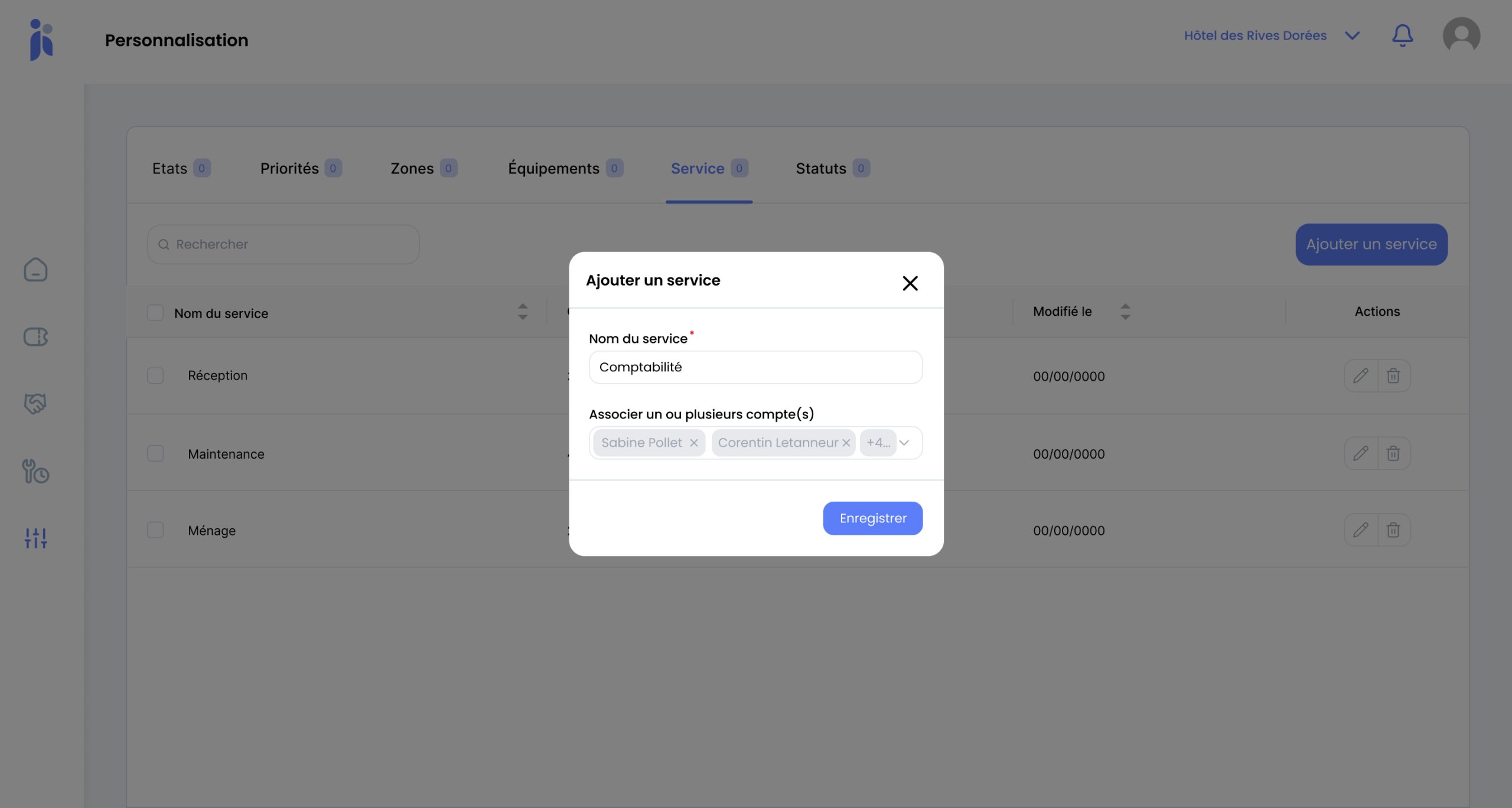 2. Donnez un nom à votre nouveau service puis rattachez des utilisateurs à celui-ci. Confirmez la création en cliquant sur « Enregistrer ».