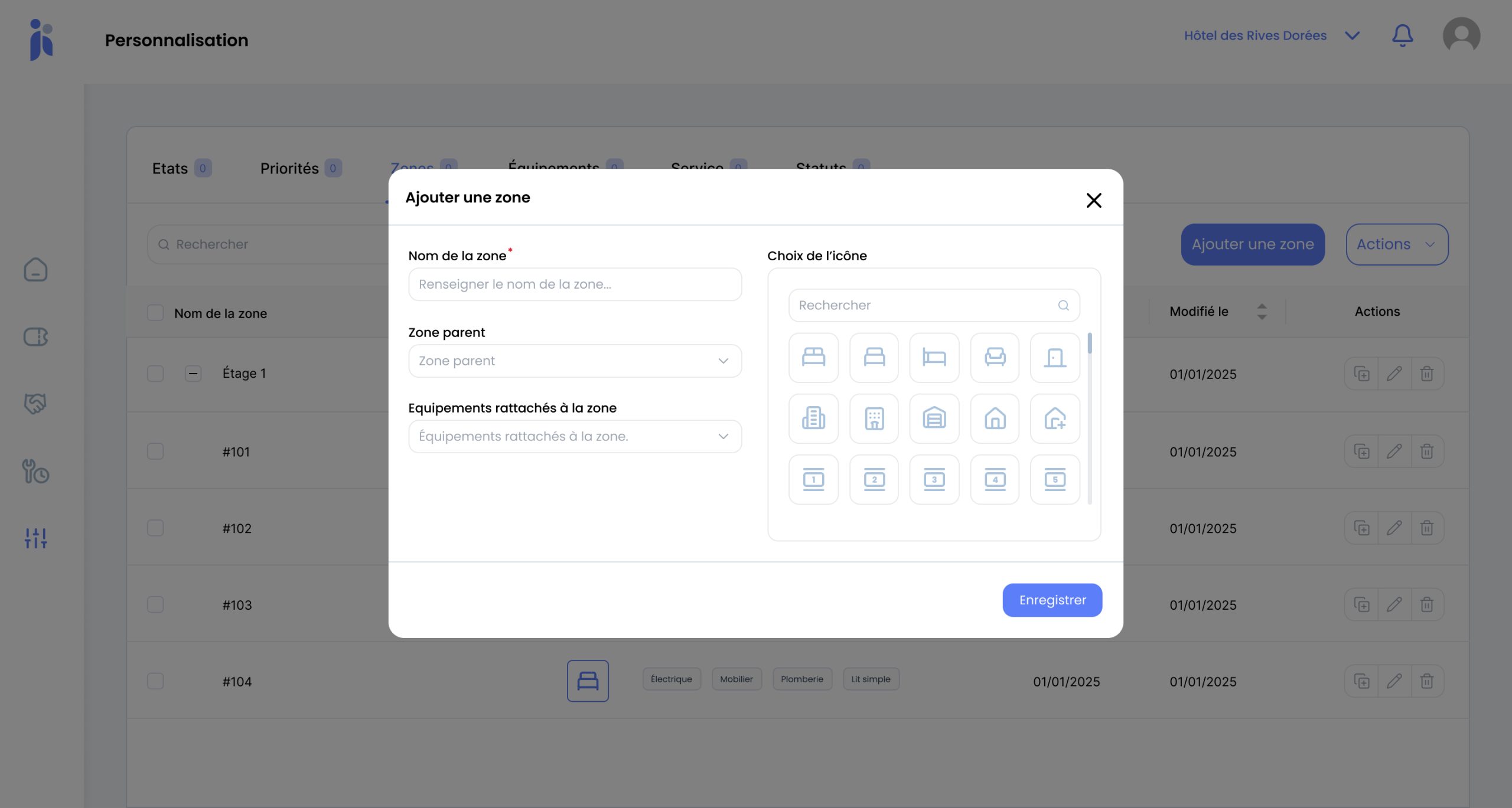2. Complétez les champs et sélectionnez un icône puis cliquez sur le bouton : « Enregistrer ».