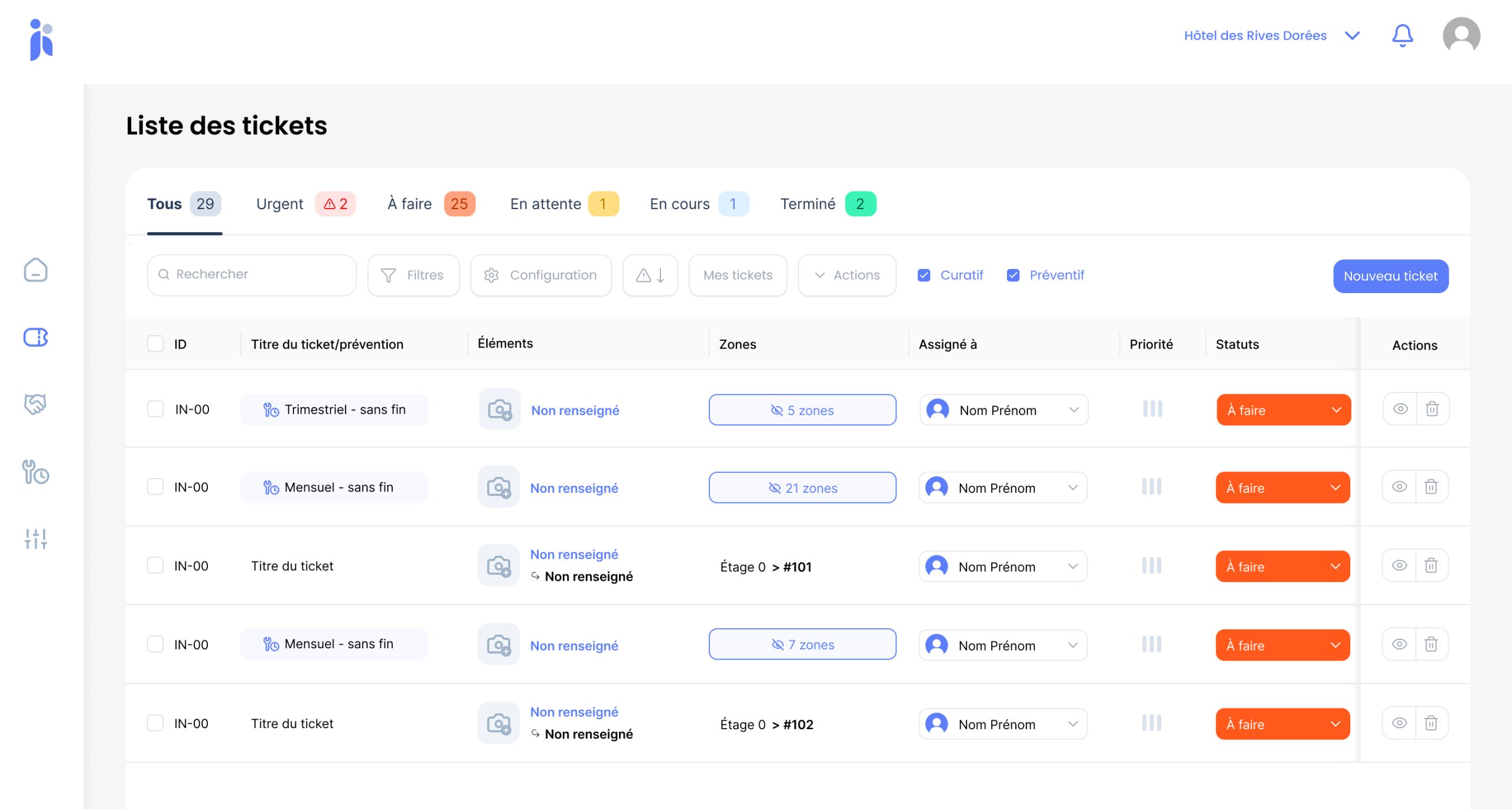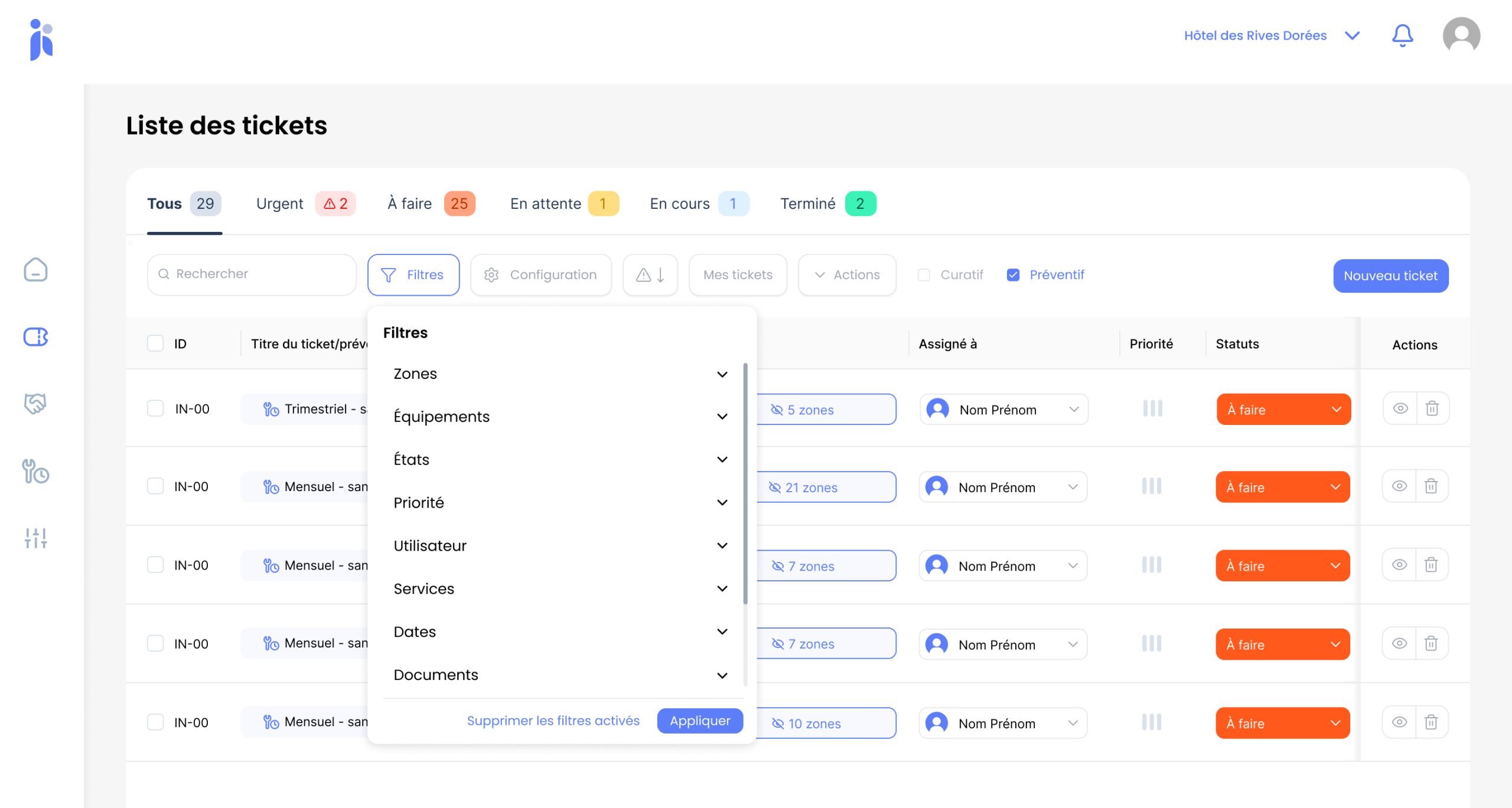 Vous avez désormais accès à la liste des tickets curatifs et préventifs