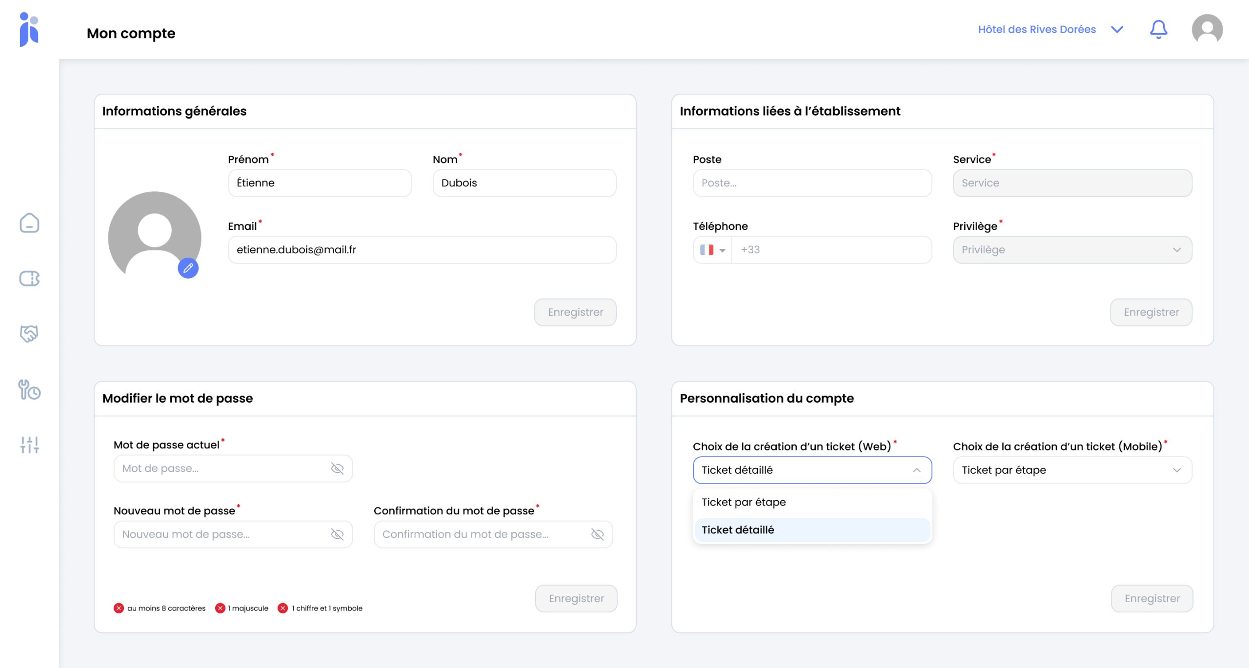 3. Modifiez votre préférence de visualisation de création de ticket dans la zone « Personnalisation de compte ».